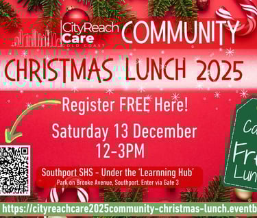 It's here again! The annual CityReach Care Community Christmas Lunch. Family fun, free lunch, carols and much more. Register for free here